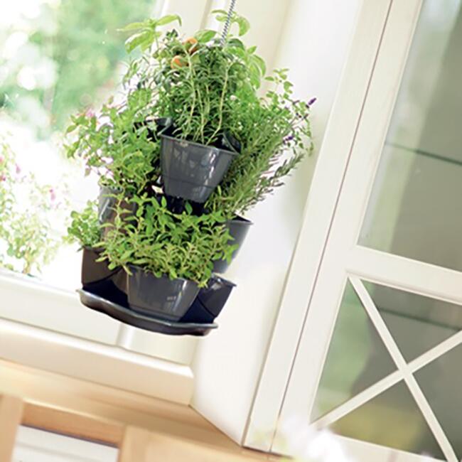Ghiveci decorativ de flori, Prosperplast, cu lant, antracit, 9 L, set 3 buc, 29.5x29.5x38/88 cm