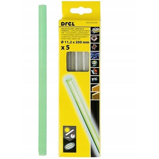 Szilikon stift ragasztópisztolyhoz, fluoreszkáló, 5 db, 11,2x200 mm