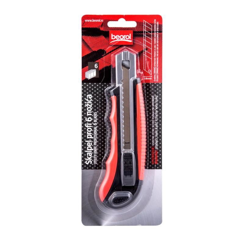 Vágó, 18 mm, puha nyél + 6 penge, Beorol