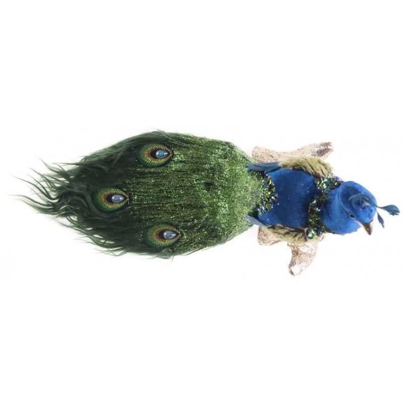 Karácsonyi dekoráció, páva pehelylel, kék, 24x12x32 cm