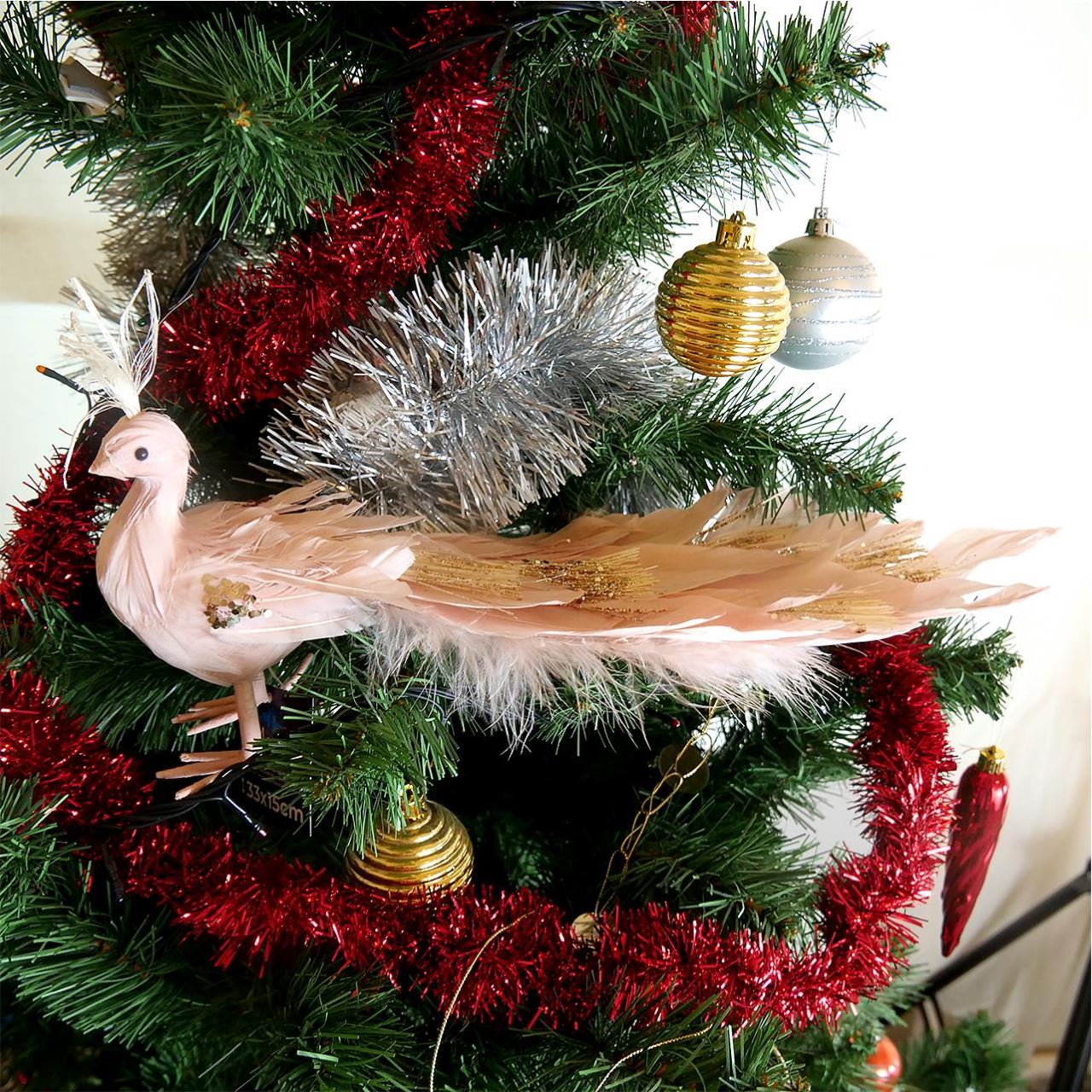 Karácsonyi dekoráció, Páva, rózsaszín, 33x12x15 cm