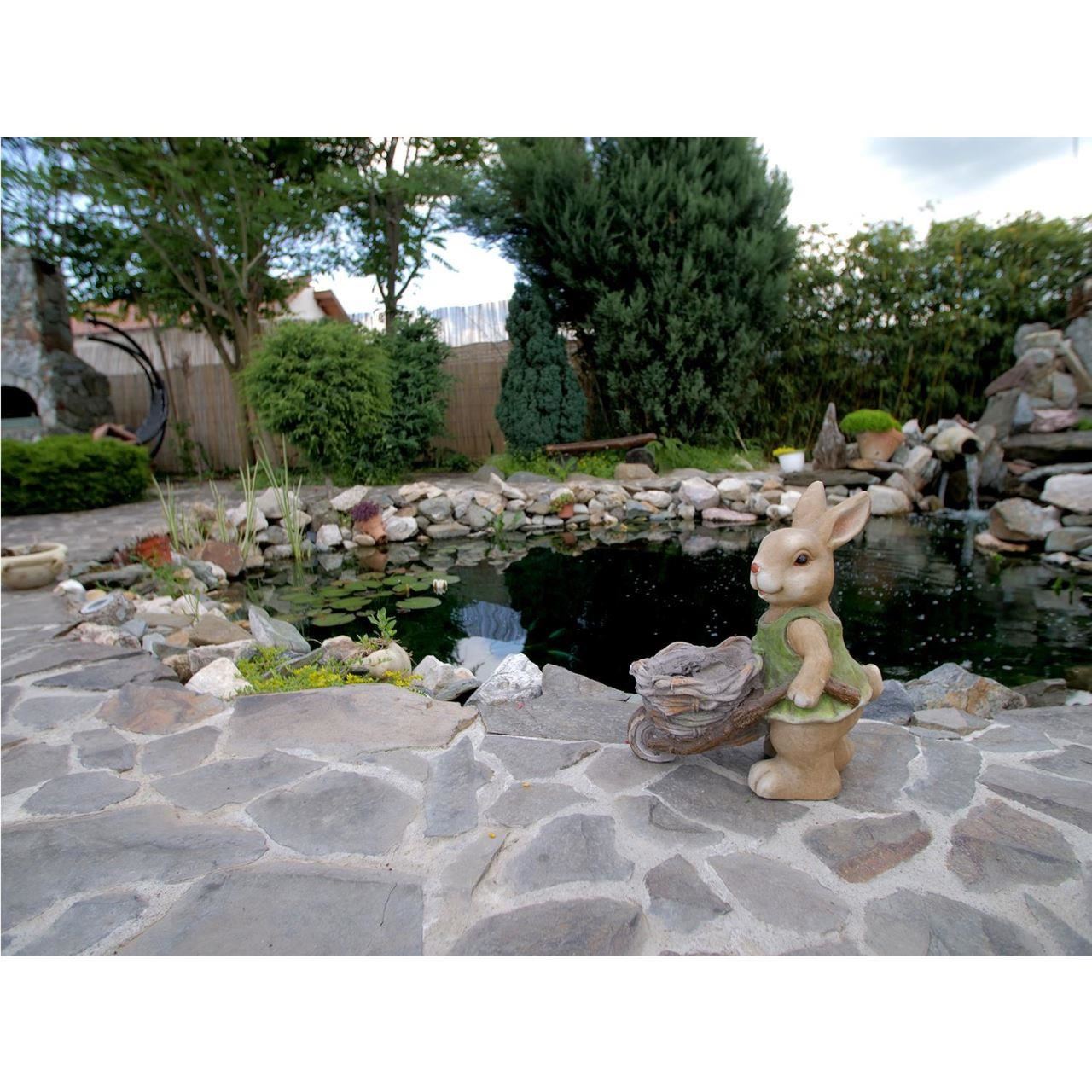 Kerti dekoráció, kerámia, nyúl talicskával, 40x19,5x34 cm