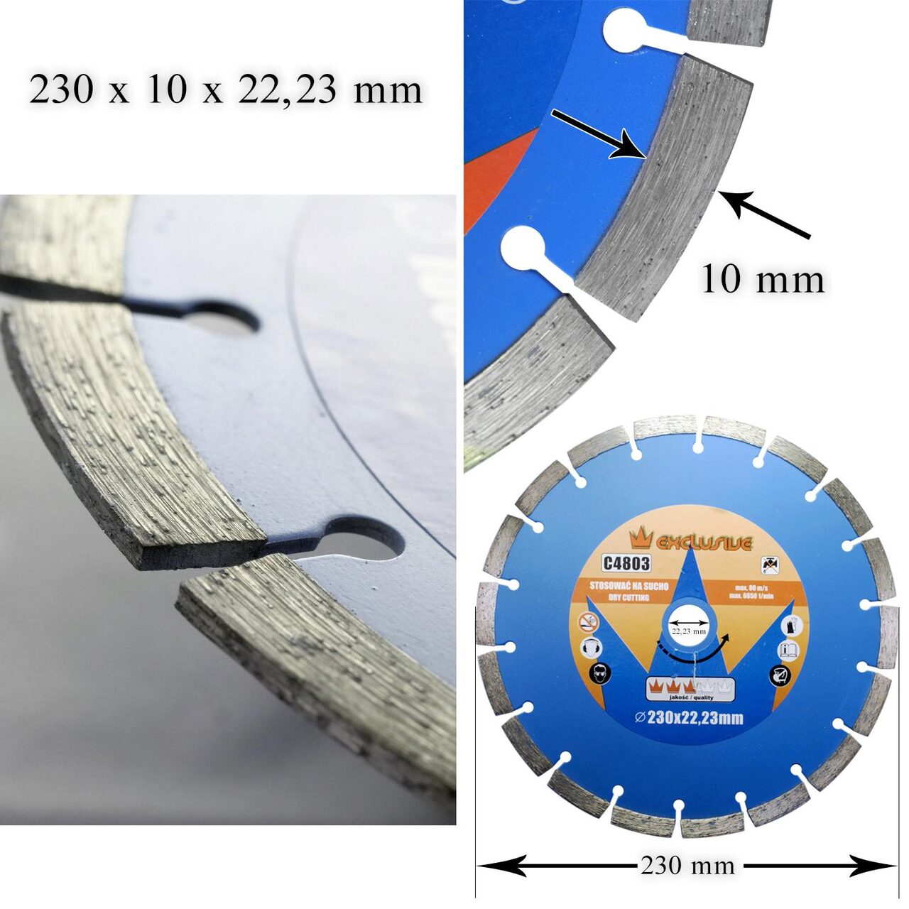 Gyémánttárcsa, beton, száraz vágás, 230 mm/22,23 mm, Richmann