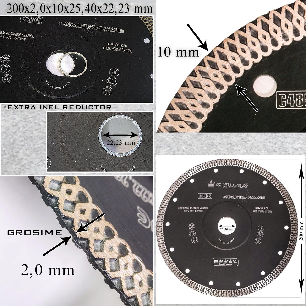Vékony turbó gyémántpenge, kerámialapok, nedves és száraz vágás, 200 mm/25,4 mm, Richmann Exclusive
