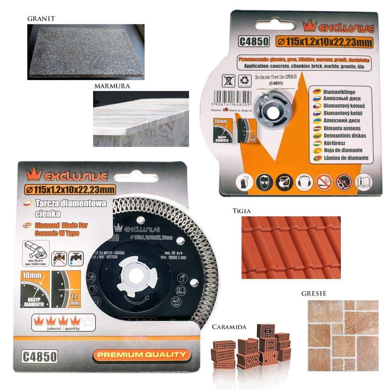 Vékony turbó gyémánttárcsa, kerámialapok, nedves és száraz vágás, 10 darabos készlet, 115 mm/22,23 mm, Richmann Exclusive