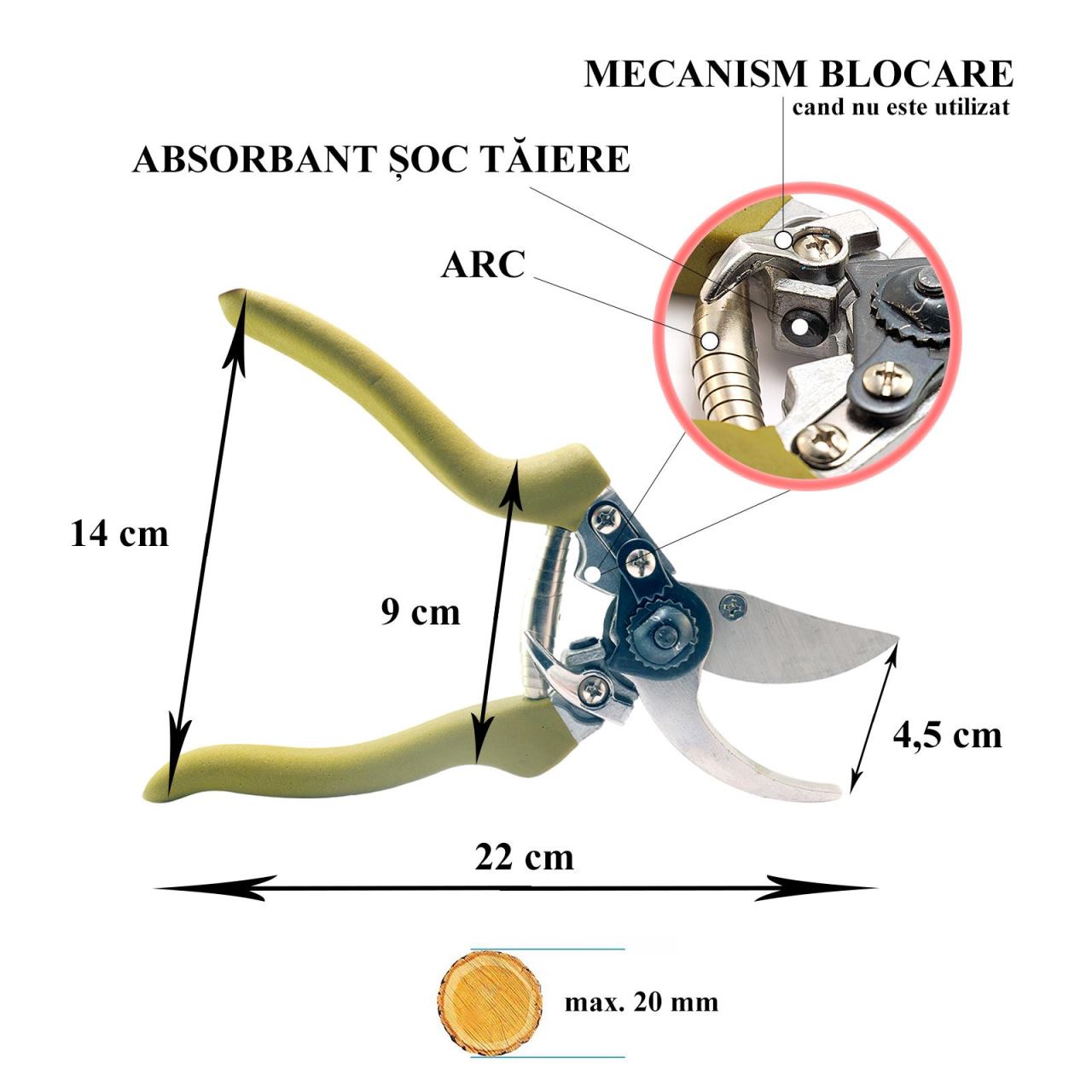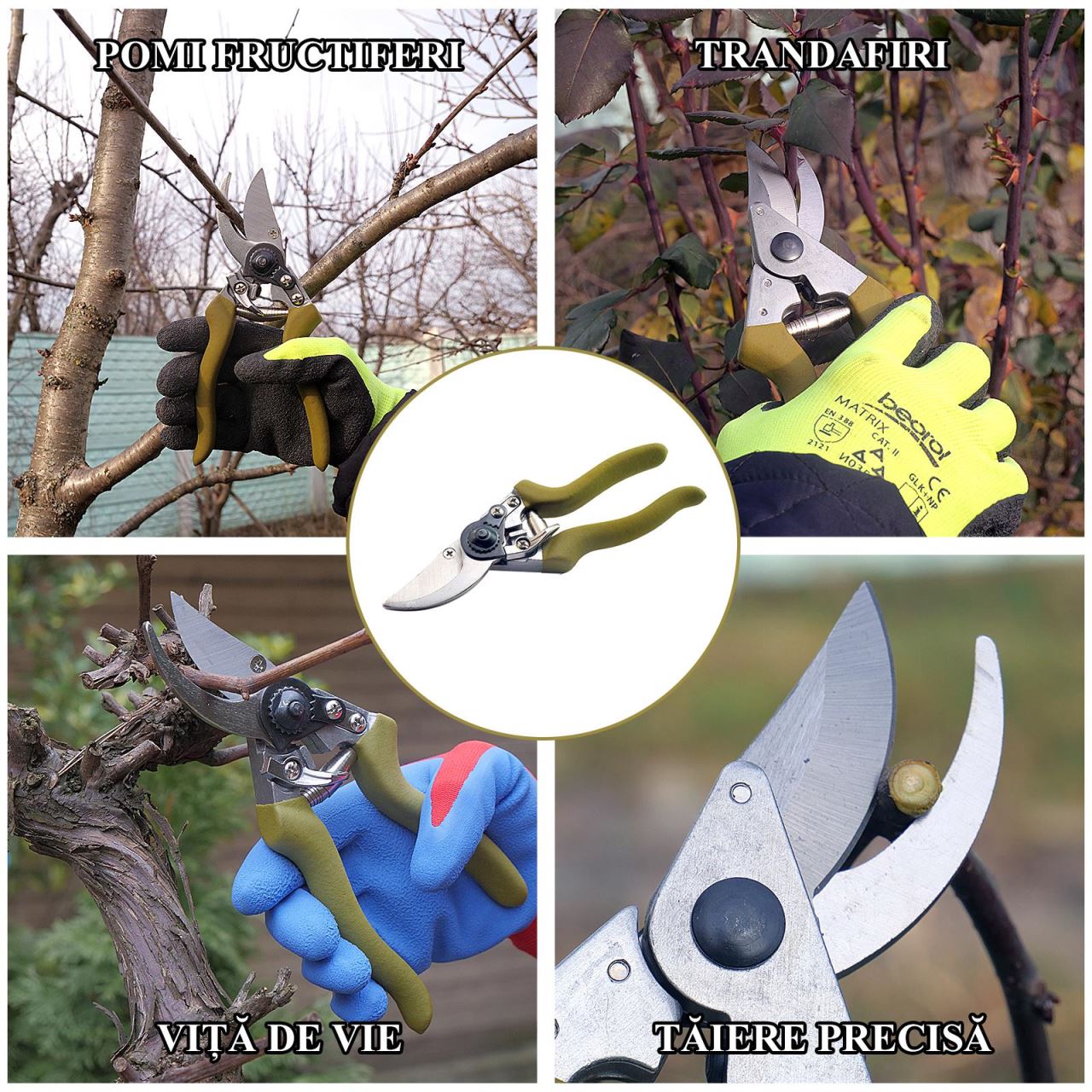 Kerti olló, bypass típusú, SK5 acél, zöld, latex kesztyű, 22 cm, XTline