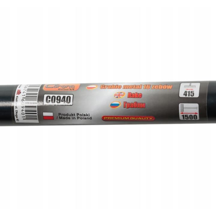 Lombgereblye, kerti, fém nyél, 16 fogú, 41,5x150 cm, Richmann Exclusive