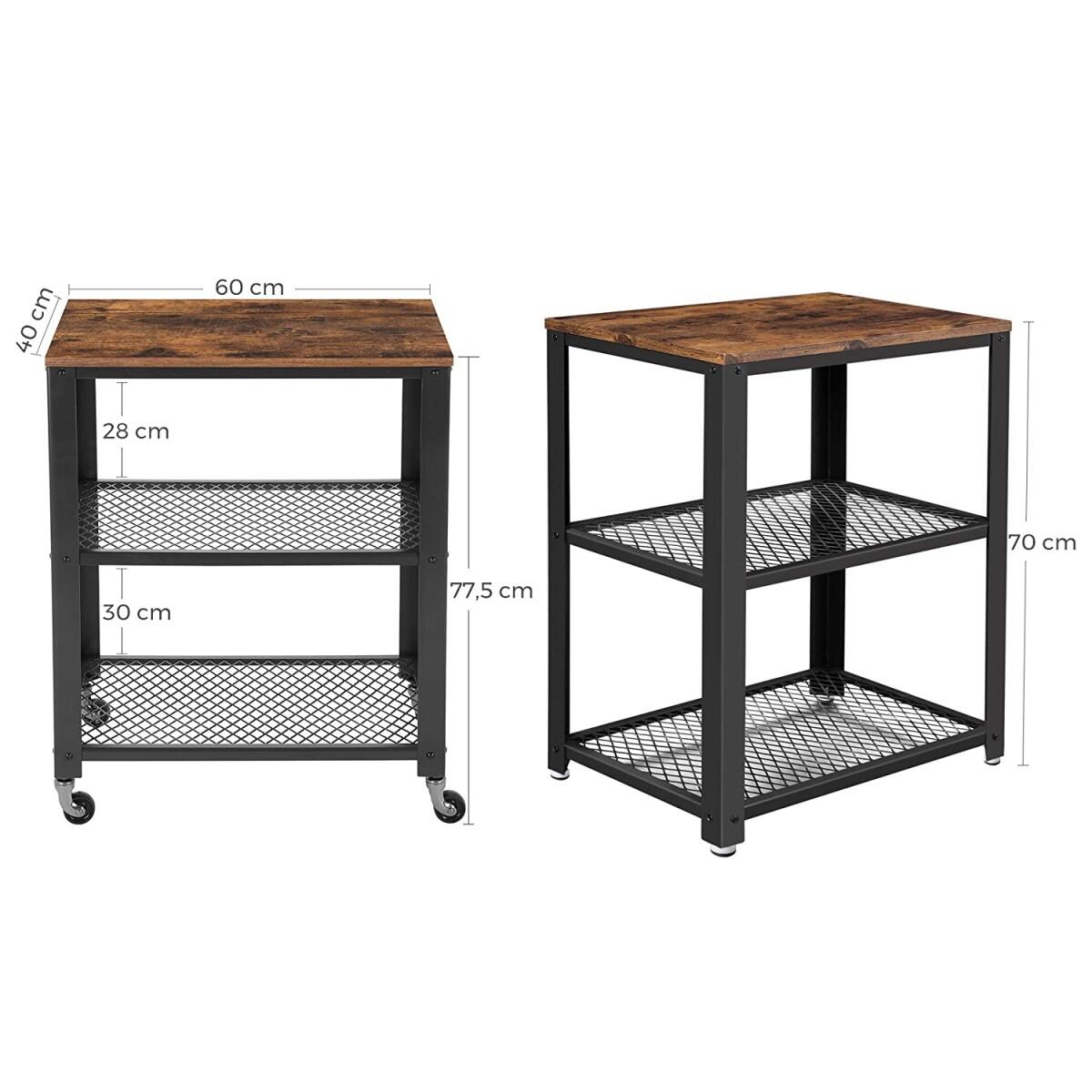 Dohányzóasztal, kerekeken, világos és fém, vintage barna, 60x40x77,5 cm