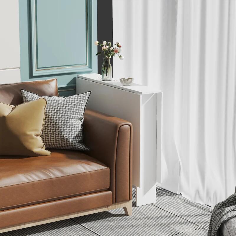 Étkező/nappali asztal, kerekeken, kihúzható, világos, fehér és natúr, 15-120x80x73 cm