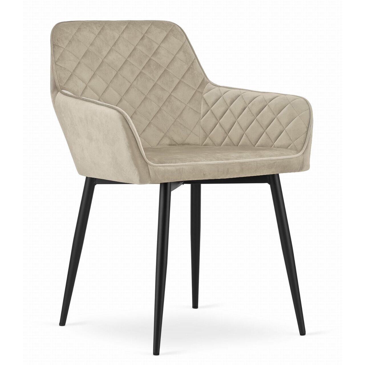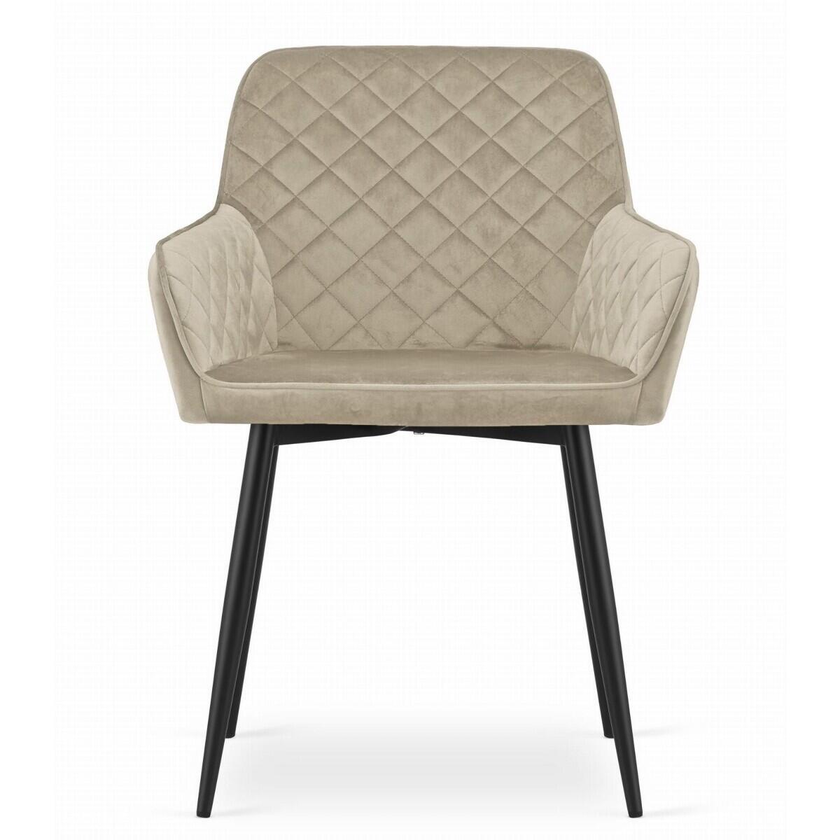 2 db-os fotel stílusú konyha/nappali szék szett, Nola, bársony, fém, bézs és fekete, 58x57x79 cm