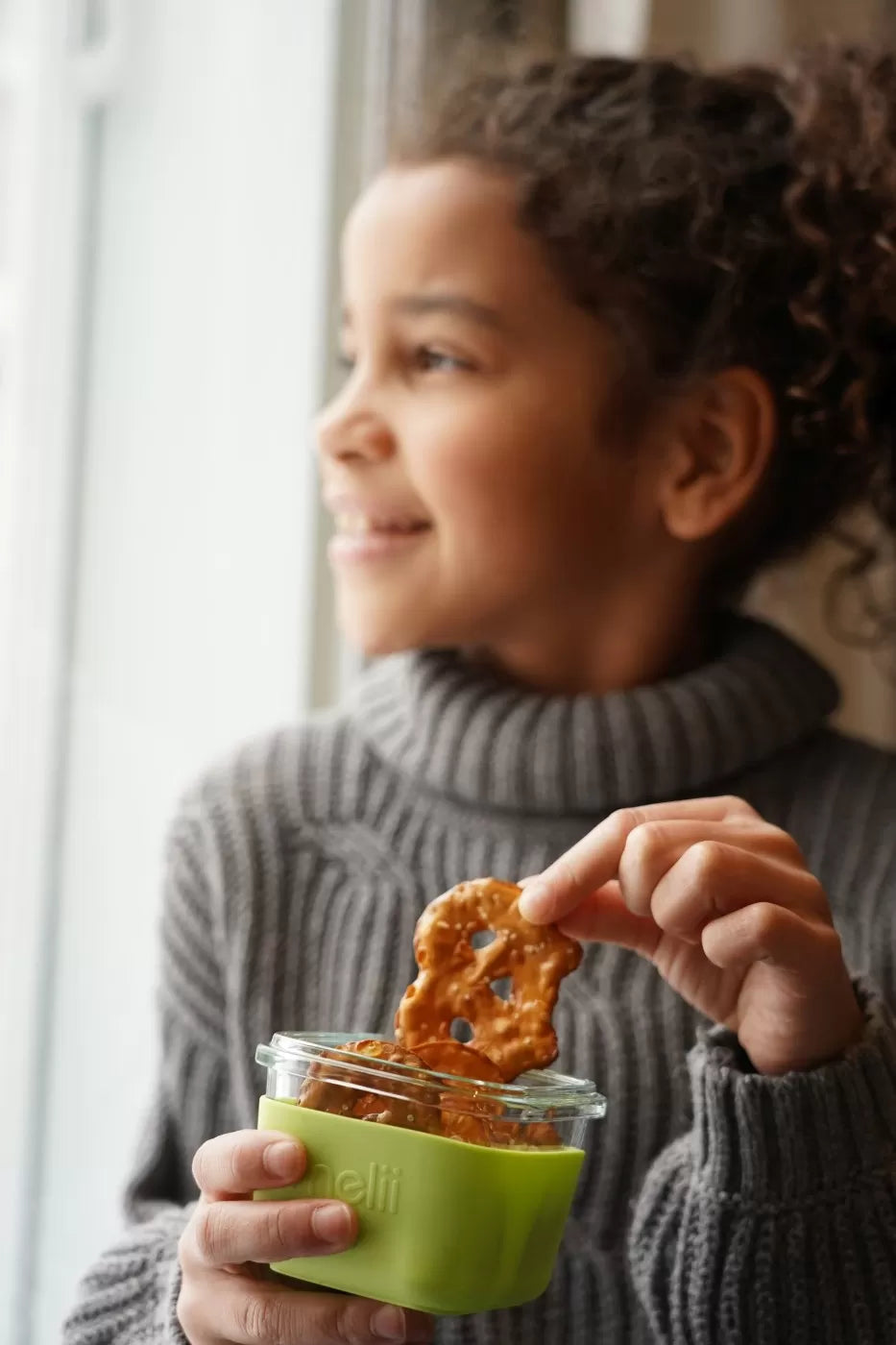 3 db-os üvegpohár szett, 3 db 160 ml, csúszásgátló szilikon fedéllel, melii kék menta-lime színben
