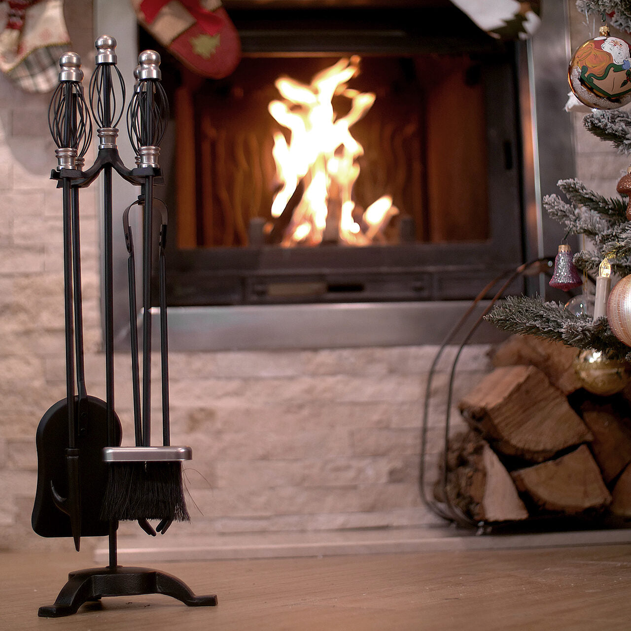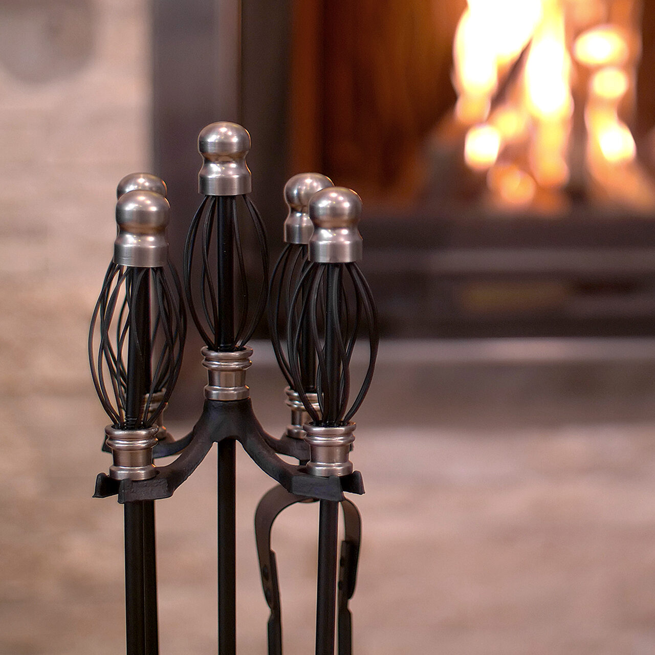 Kandalló kiegészítő készlet, 4 darabos állvány, nikkelezett, 66 cm
