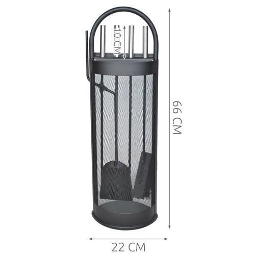 Kandalló kiegészítő készlet, 4 részes állvány, acél, fekete, 22x66 cm