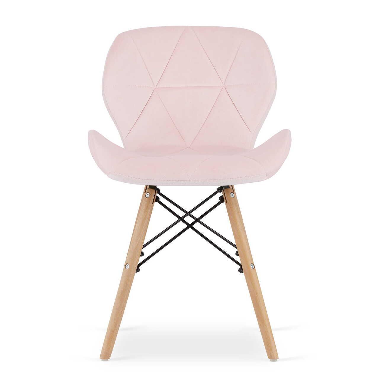 Skandináv stílusú kerek asztal szett + 2 Lago bársony szék, MDF és fa, fehér és rózsaszín, 60x72 cm