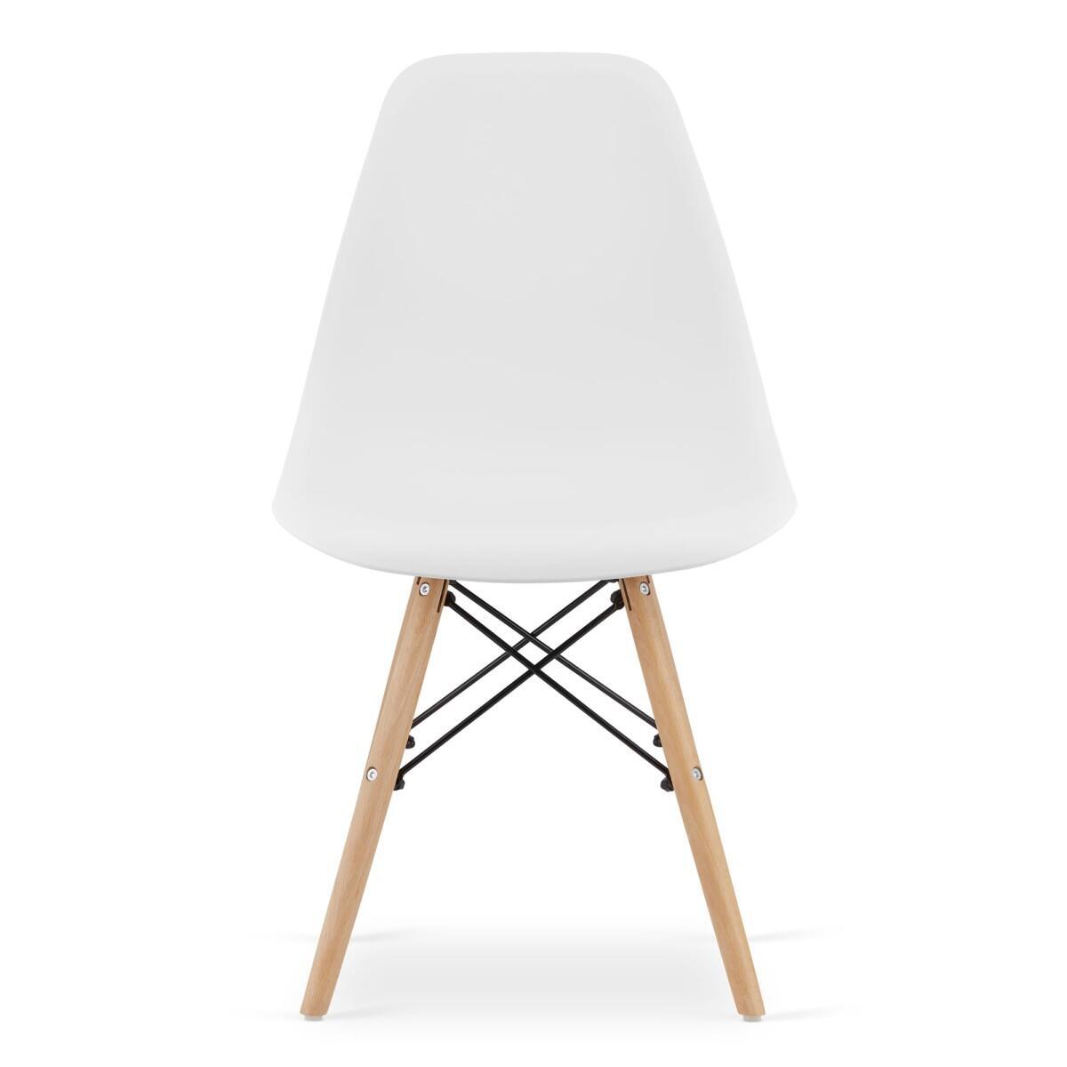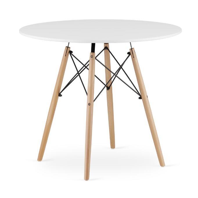 Skandináv stílusú kerek asztal szett + 4 Osaka szék fehér, MDF és fa, 90x72 cm