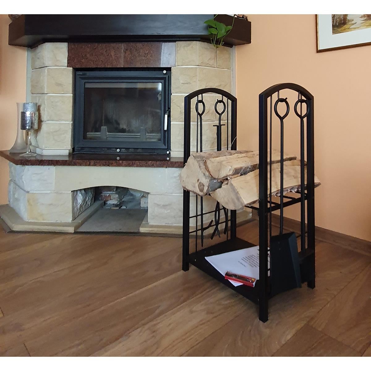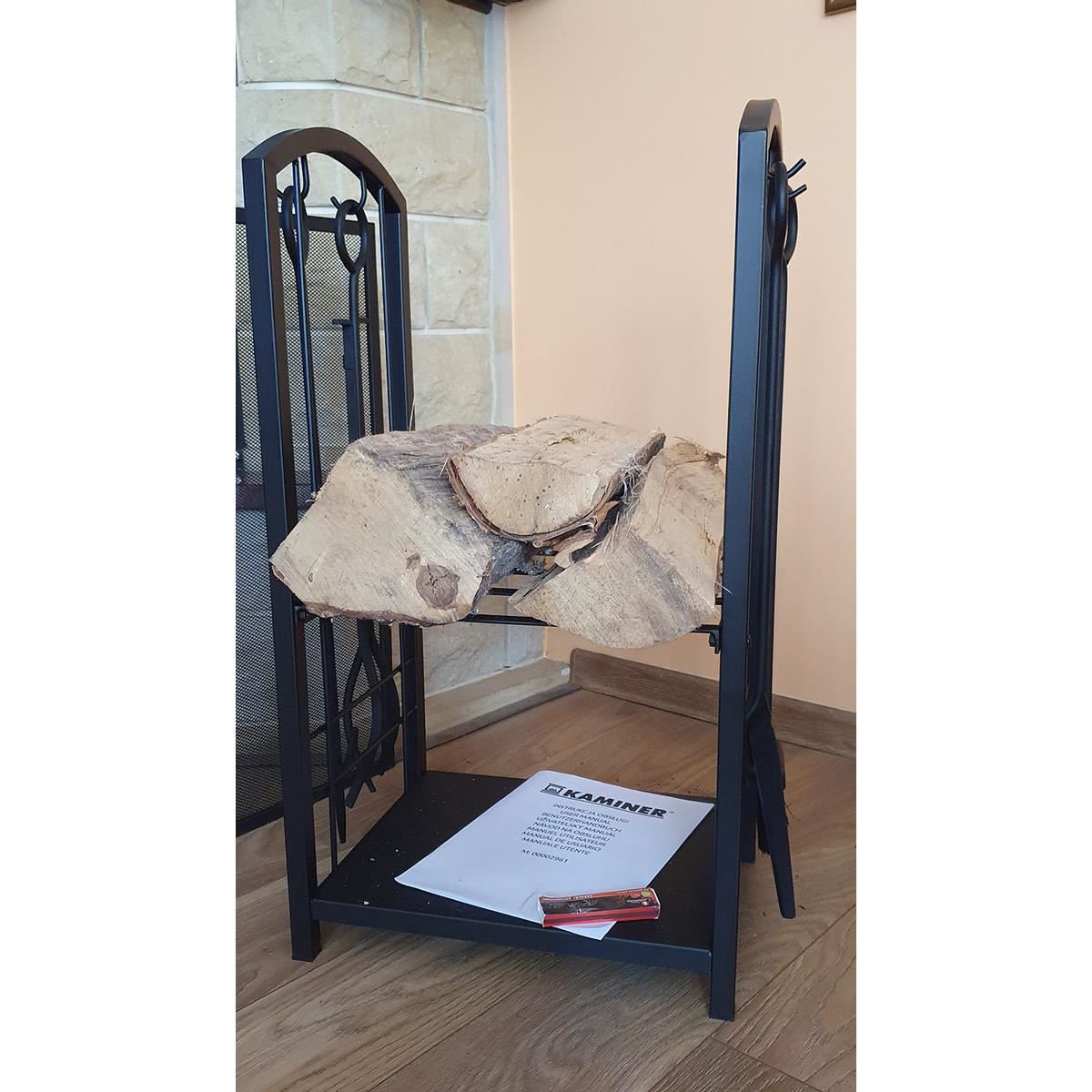 Kandallófa tartó szett, 2 szint, 4 tartozékkal 60 cm, acél, 40x30x73 cm