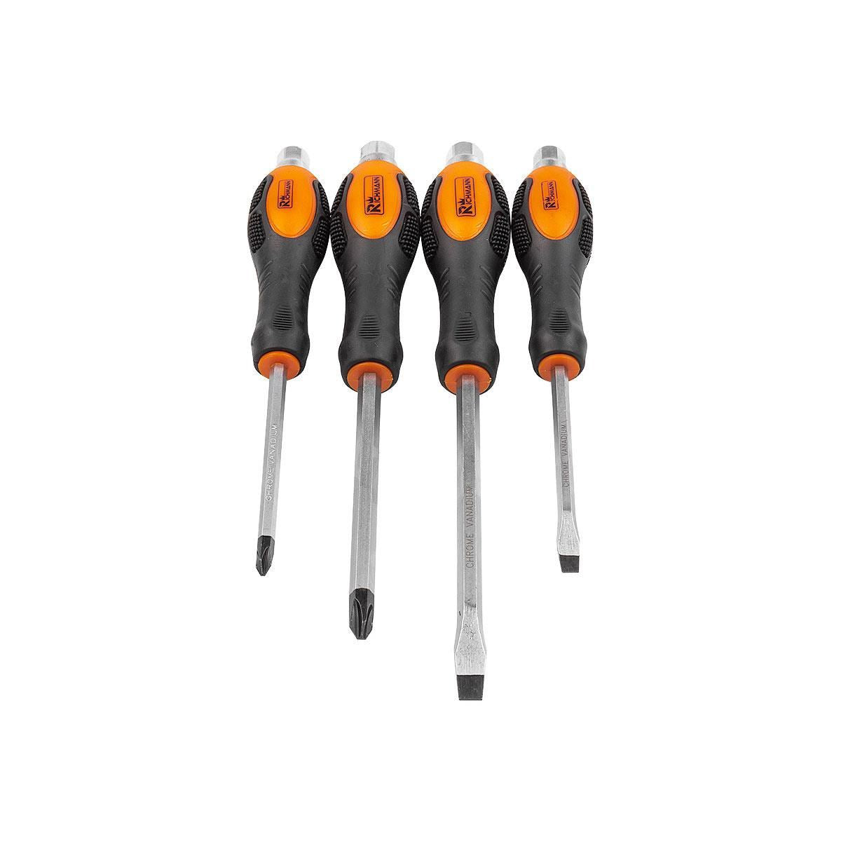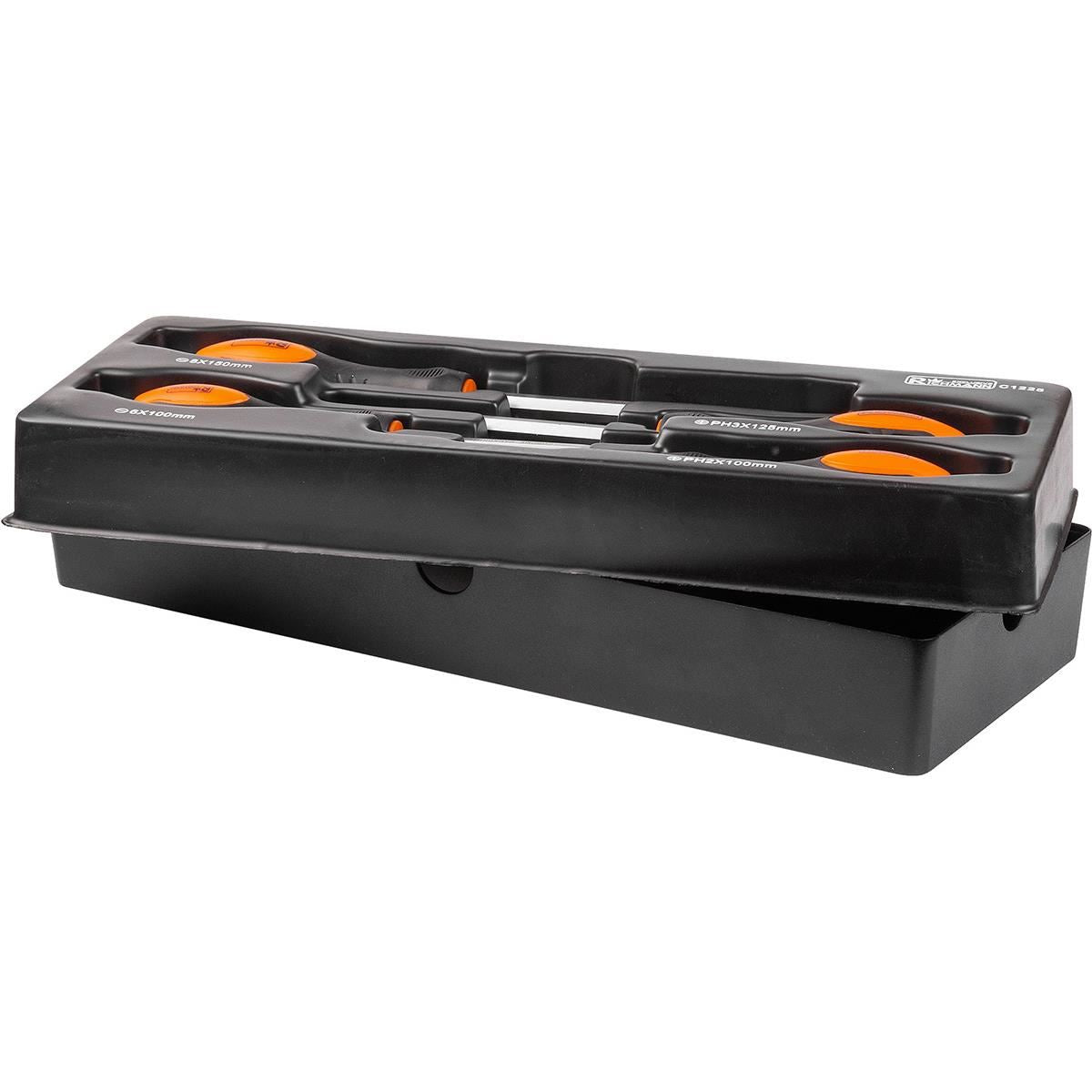 Ütőcsavarhúzó készlet, hornyolt és keresztfejű, fiókos TÍPUS A (385x150 mm) mobil szekrényhez, PH2-3, 6-8 mm, 125-150 mm, 4 db, RICHMANN