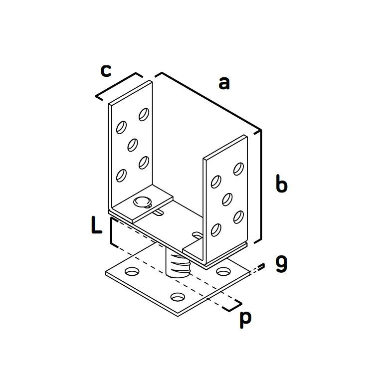 Fém gerendatartó, horganyzott, állítható, talppal, 125 mm, Strend Pro