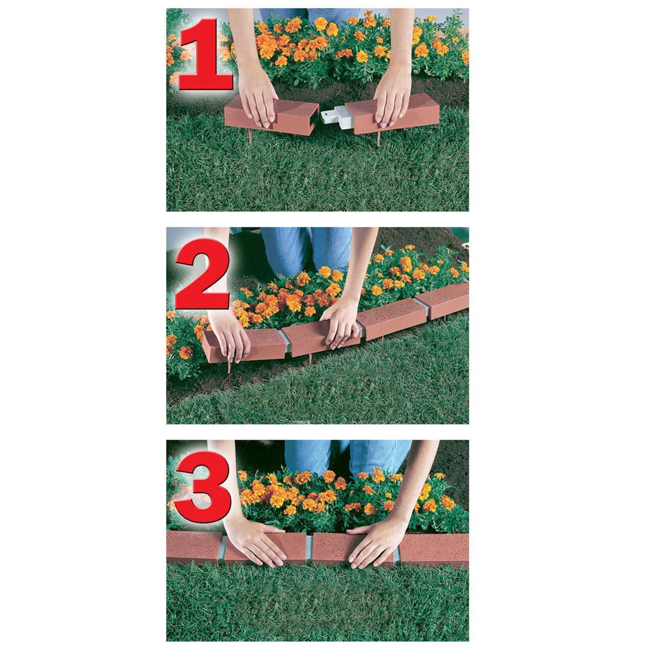 Bordura decorativa, efect caramida, 2 x lampa LED cu iluminare solara, set 10 buc, 2.1 m