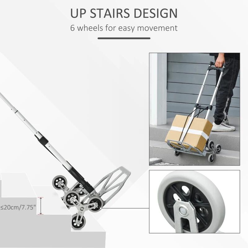 Carucior transport marfa pentru scari, trepte, 6 roti, max 70 kg, 47x47x100 cm