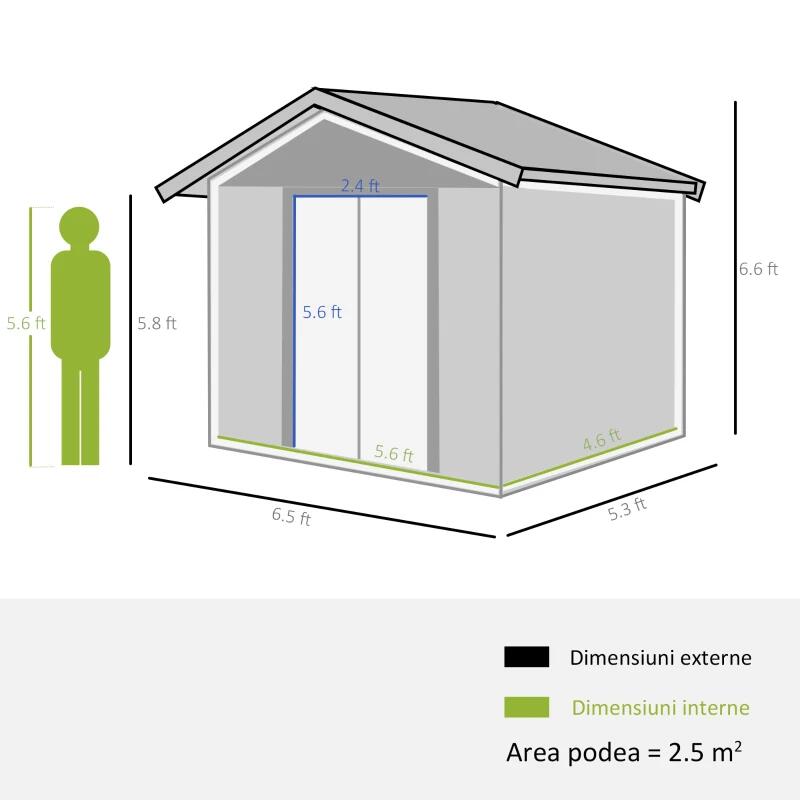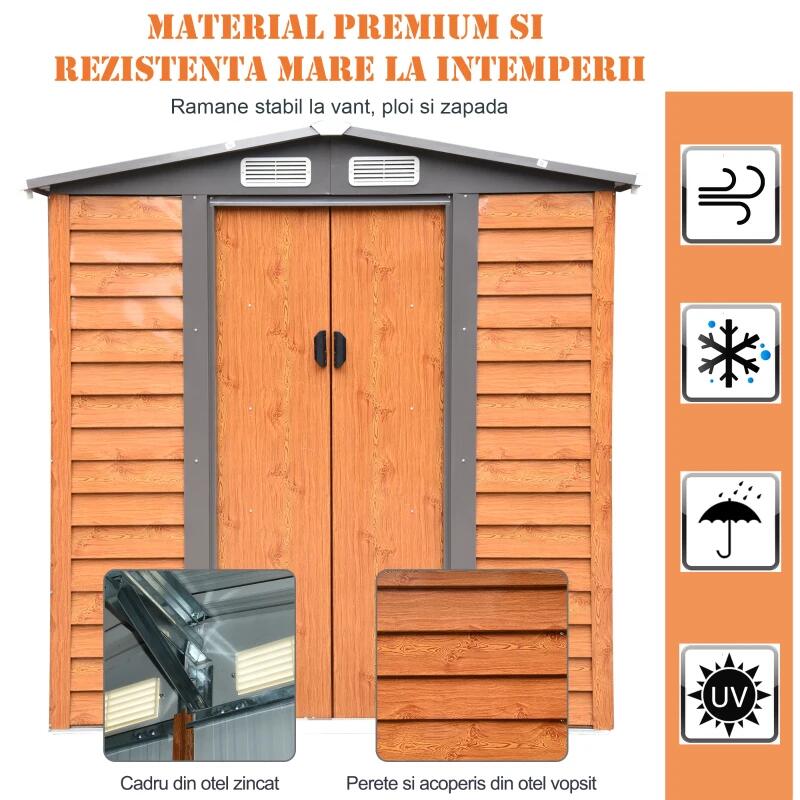 Casuta/magazie/sopron de gradina pentru depozitare unelte, otel si PP, maro, 197.5x160x201 cm
