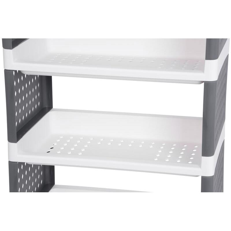 Comoda/raft plastic, MagicHome, pe roti, 5 polite, gri si alb, max 25 kg, 49x29x97 cm