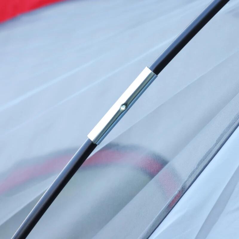 Cort camping, 5-6 persoane, material Oxford, impermeabil, cu copertina, geanta, gri si rosu, 455x230x180 cm
