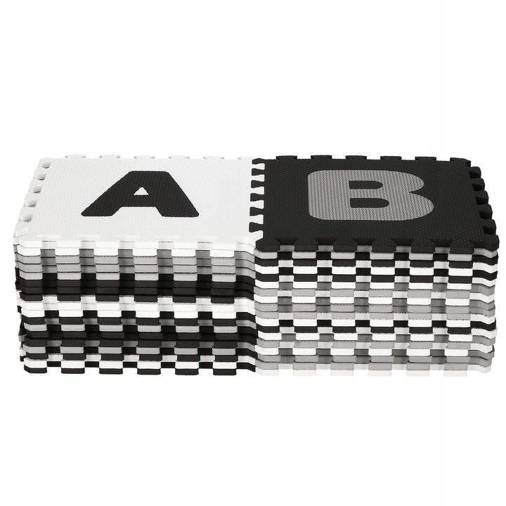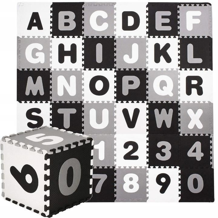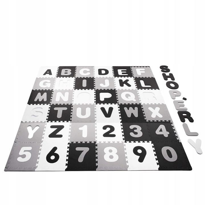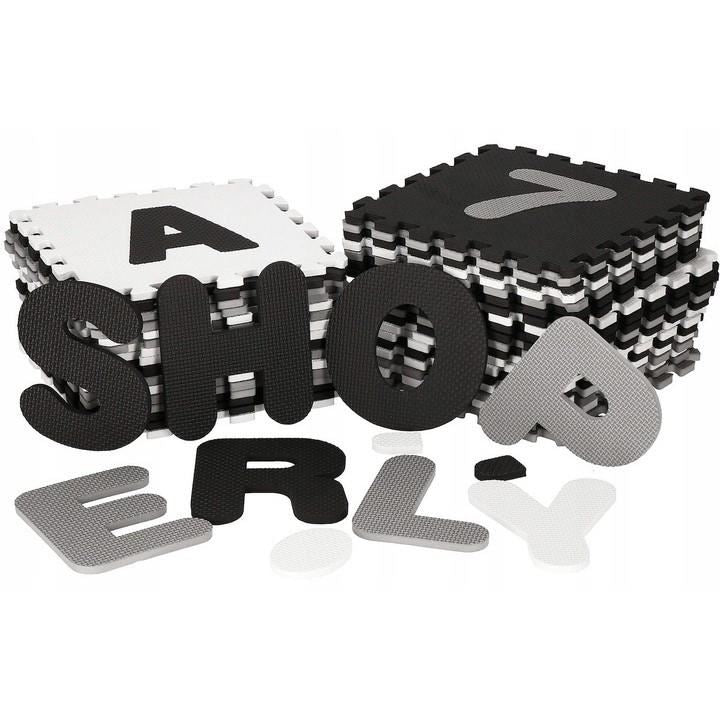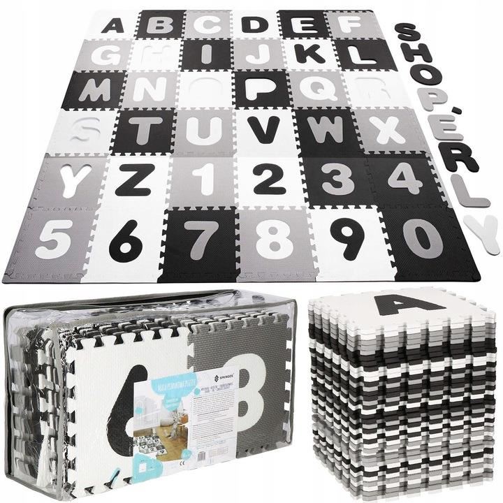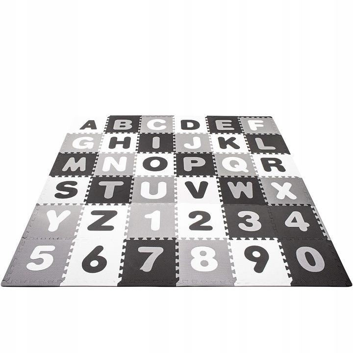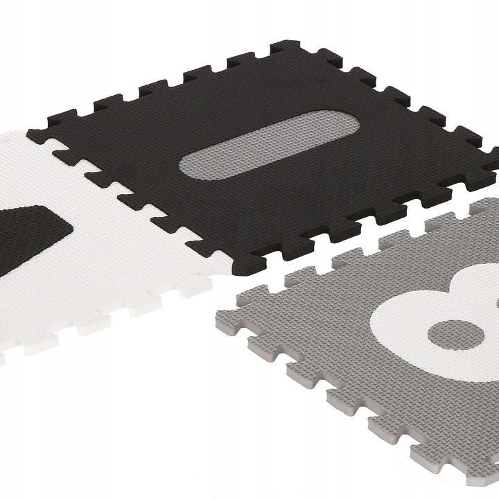 Covor spuma ptr copii, EVA gri cu negru, model alfabet si numere, 172x172x1cm, Springos