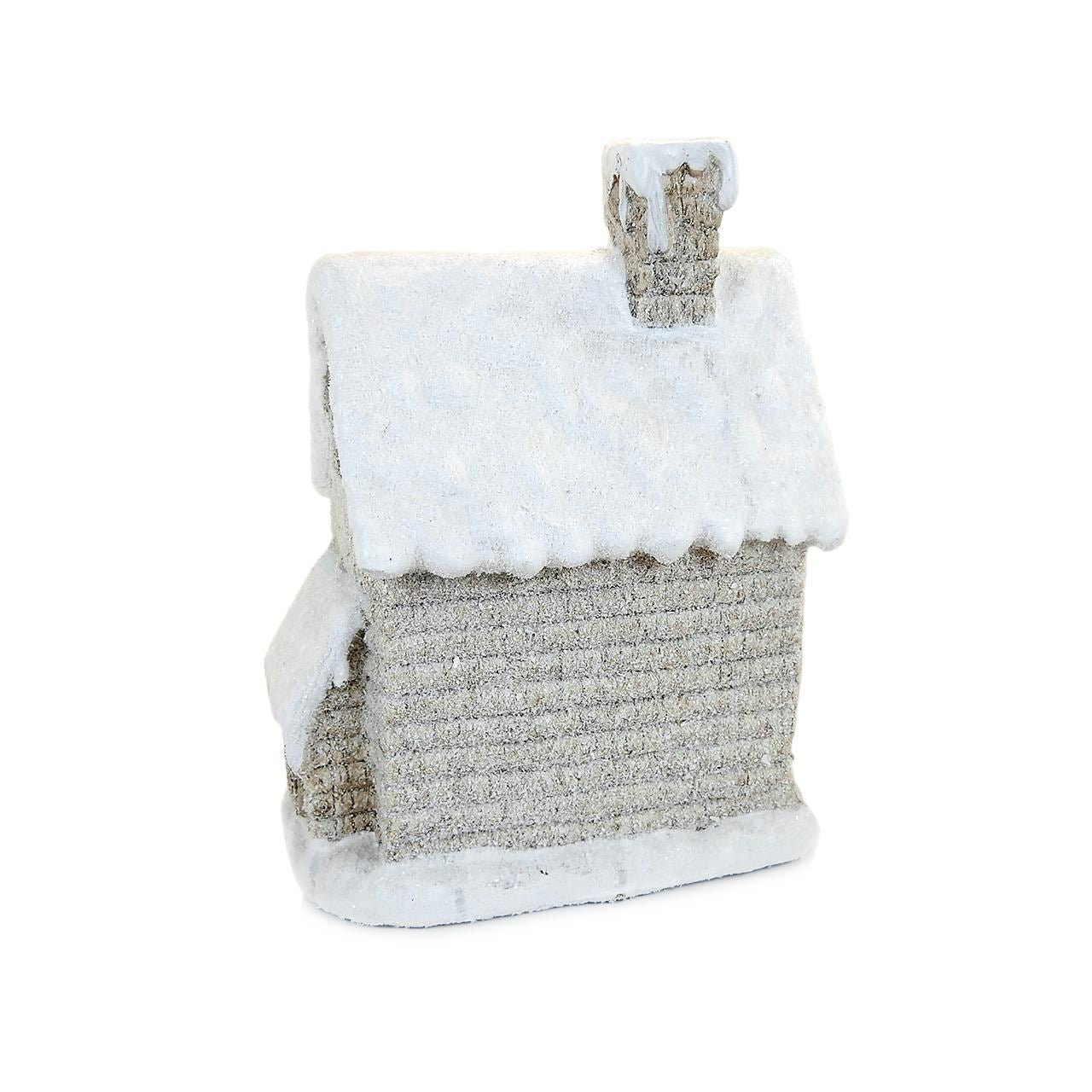 Decoratiune iarna, ceramica, casa cu ferestre luminate, alb si bej, LED, 3xAAA, 25x18x36 cm