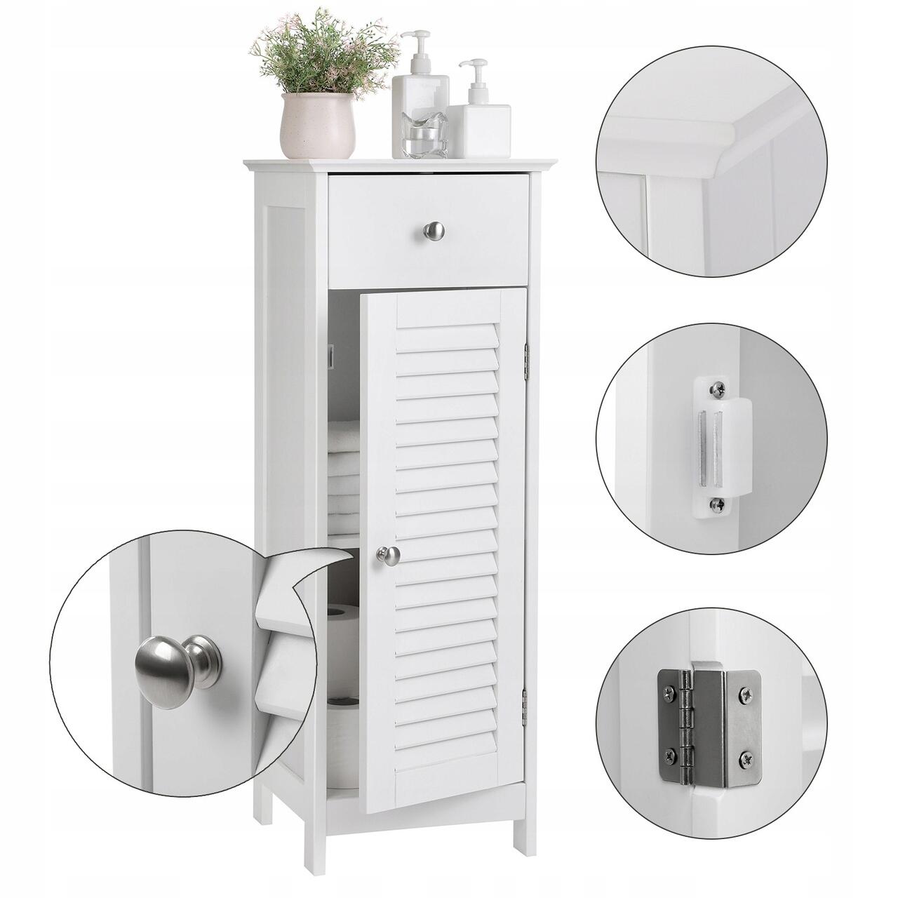 Dulap baie, Vasagle, placa MDF, 1 raft, 1 usa, 1 sertar, alb, 32x30x87cm