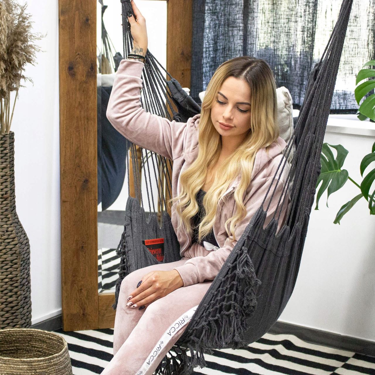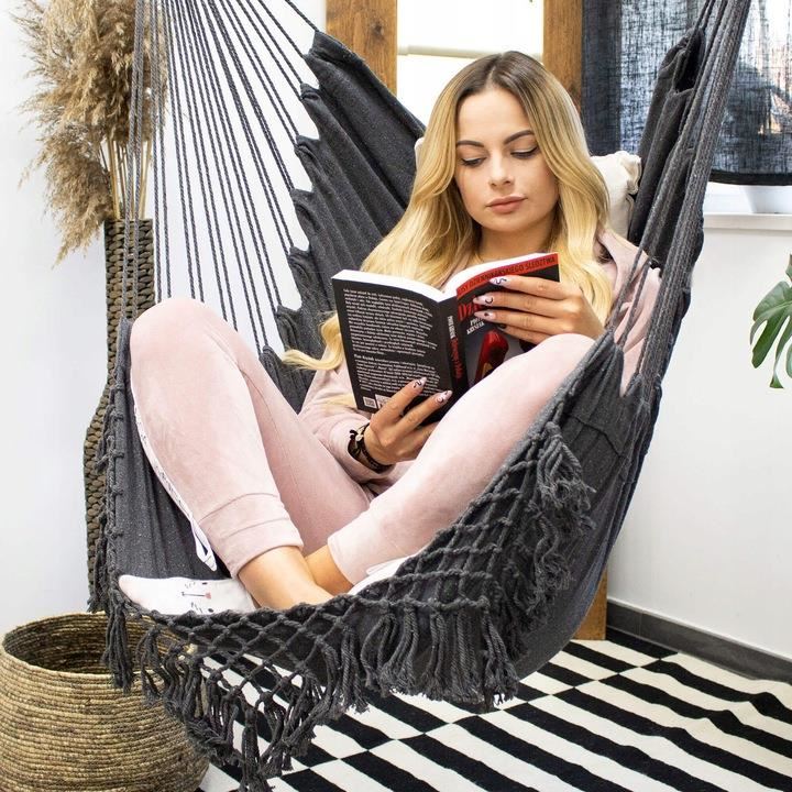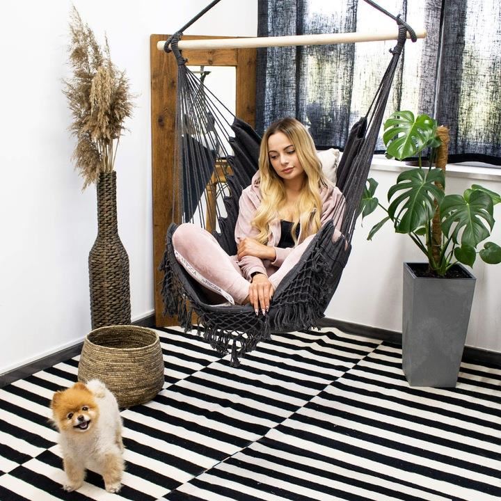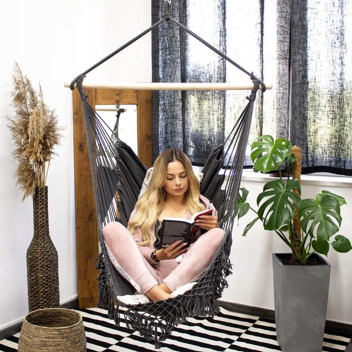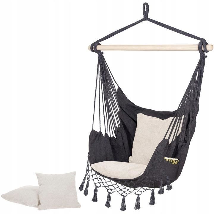 Hamac tip scaun, cu 2 perne, gri si crem, max 150 kg, 130x100 cm, Springos