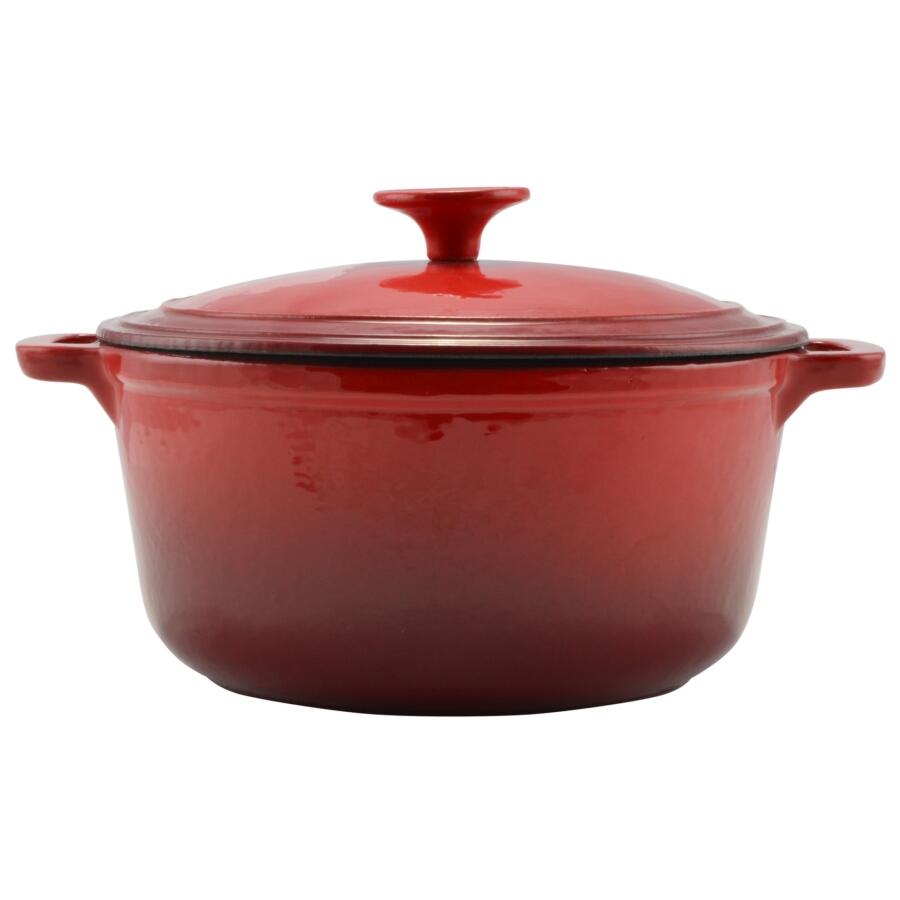 Oala de fonta emailata cu capac, rosie, 4 L, Perfect Home