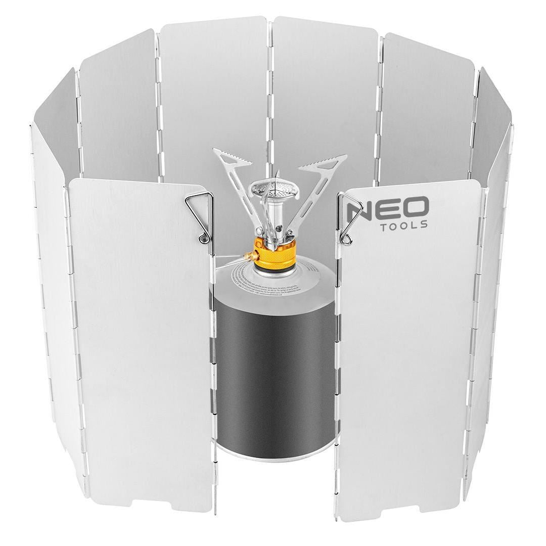 Panou, paravan, protectie impotriva vantului, pentru aragaz camping, pliabil, aluminiu, 10 elemente, 84x24 cm, NEO