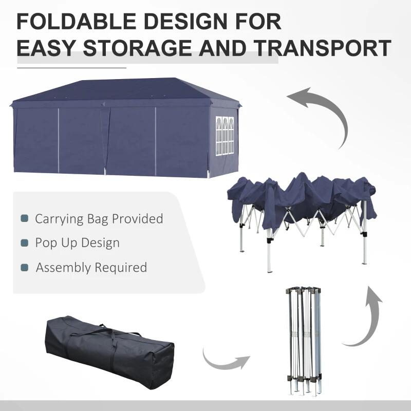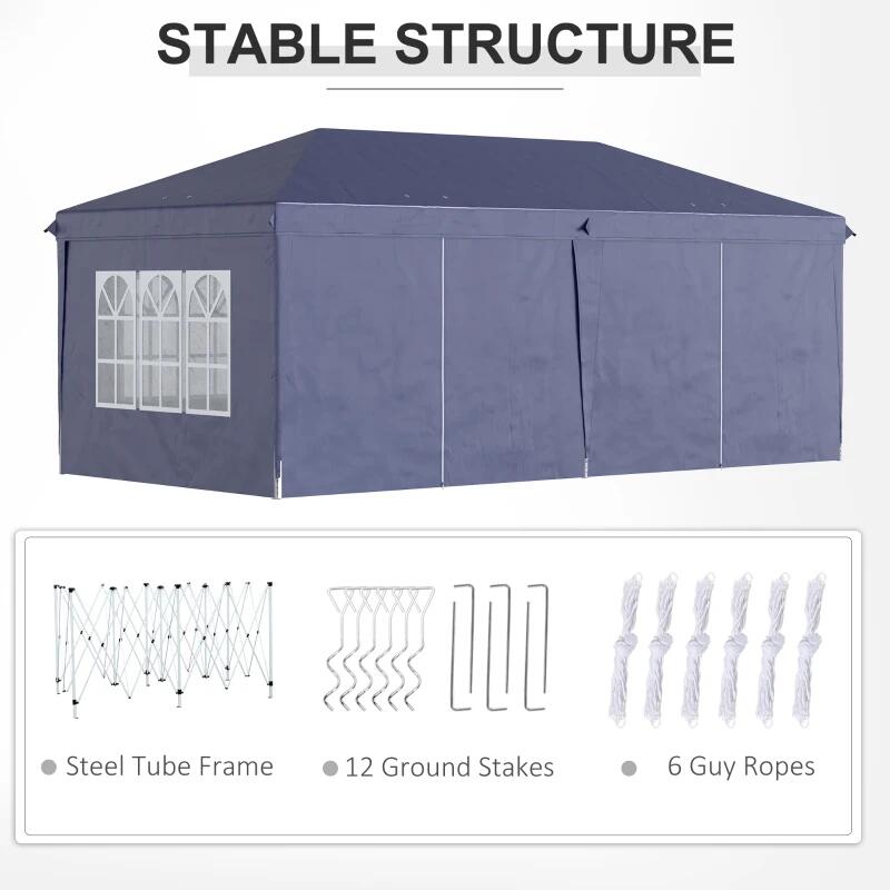 Pavilion pentru gradina/comercial, cadru metalic material Oxford, 6 pereti, cu geanta, albastru, 5.85x2.95x2.70 m