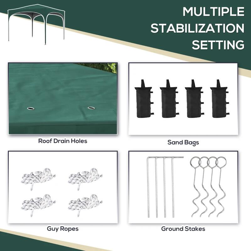 Pavilion pentru gradina/terasa, cadru metalic, material Oxford, cu tarusi, corzi ancorare, geanta, reglabil, verde, 2.95x2.95x2.55 m