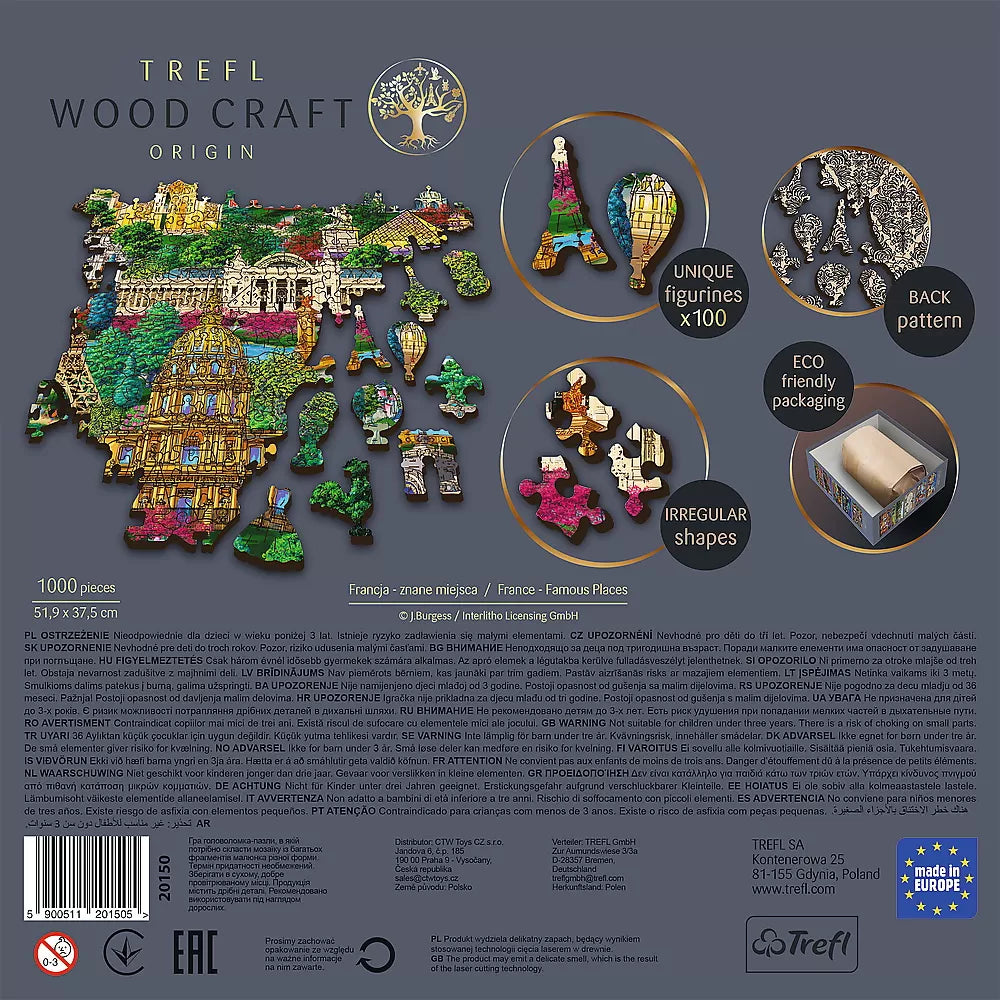 Puzzle trefl din lemn 1000 piese obiective turistice faimoase din franta