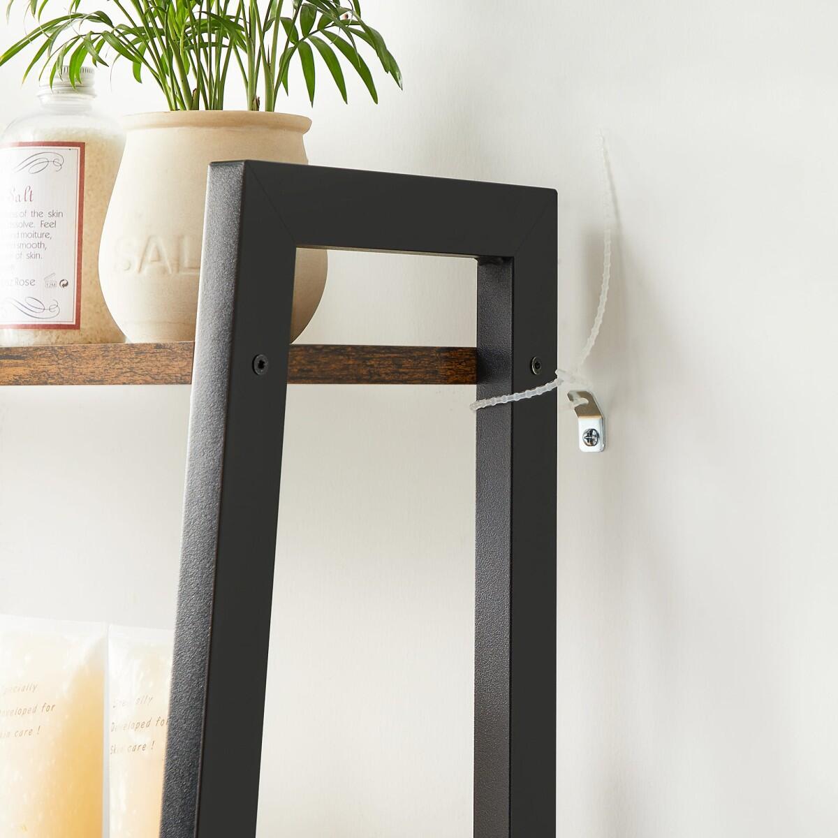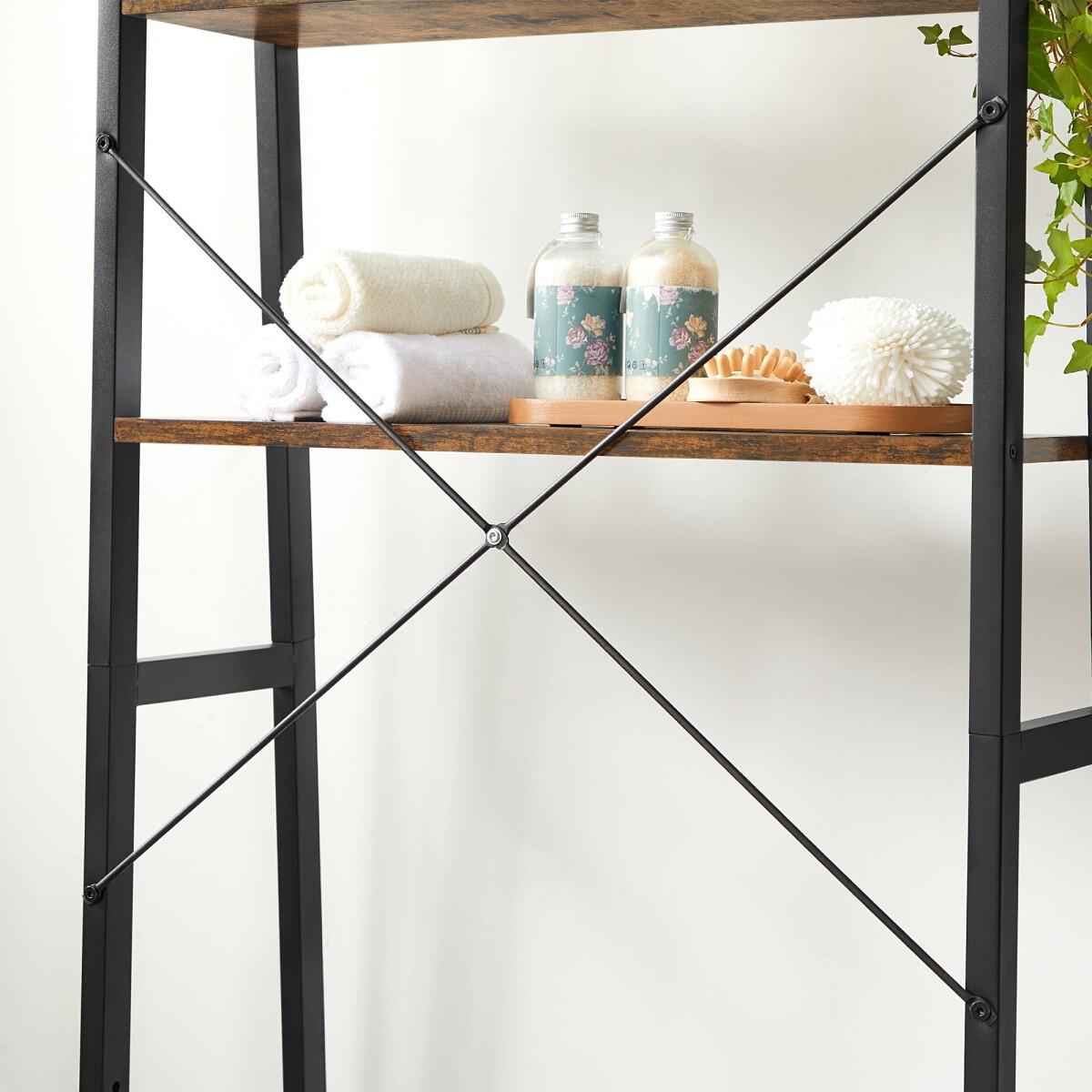 Raft pentru baie, deasupra toaletei, pal si otel, 3 polite, maro rustic si negru, 64x30x156 cm