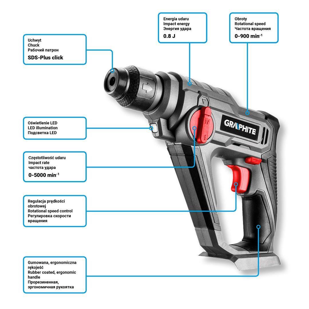 Rotopercutor, SDS Plus, 18V Li-ion (acumulator neinclus), 0.8 J, Graphite Energy