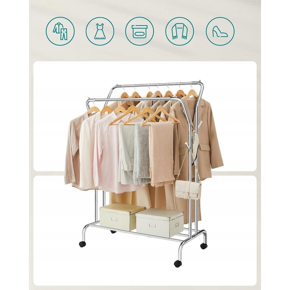 Suport mobil cu roti pentru haine, Artool, cu raft incaltaminte, otel, argintiu, max 100 kg, 103.5x52.5x155 cm